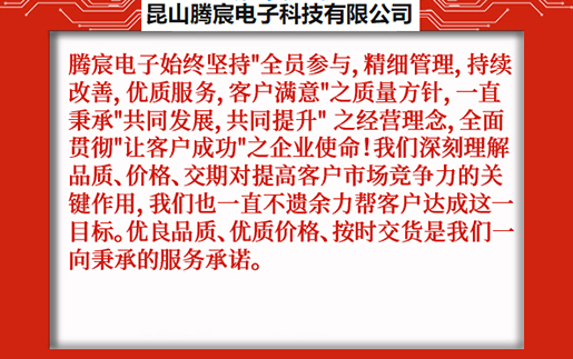 昆山騰宸電子科技有限公司位于中國線路板加工之都昆山千燈,公司專注于電路板研發(fā)設(shè)計、PCB抄板、元器件采購、SMT貼片加工、組裝測試,為客戶提供一站式電子制造服務(wù)。騰宸電子始終堅持"全員參與,精細管理,持續(xù)改善,優(yōu)質(zhì)服務(wù),客戶滿意"之質(zhì)量方針,一直秉承"共同發(fā)展,共同提升" 之經(jīng)營理念,全面貫徹"讓客戶成功"之企業(yè)使命!我們深刻理解品質(zhì)、價格、交期對提高客戶市場競爭力的關(guān)鍵作用,我們也一直不遺余力幫客戶達成這一目標(biāo)。優(yōu)良品質(zhì)、優(yōu)質(zhì)價格、按時交貨是我們一向秉承的服務(wù)承諾。 ...